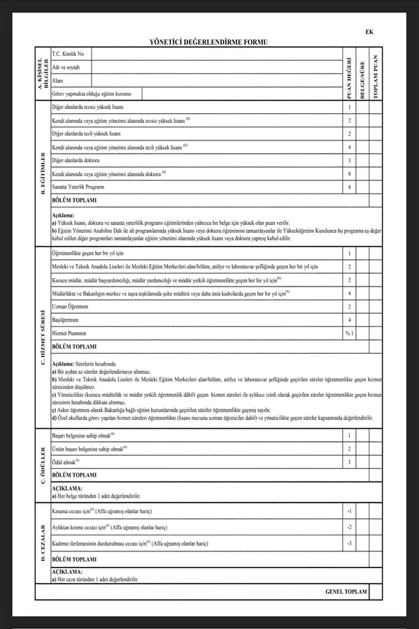 Millî Eğitim Bakanlığından: MİLLÎ EĞİTİM BAKANLIĞI EĞİTİM KURUMLARI YÖNETİCİ GÖREVLENDİRME YÖNETMELİĞİ BİRİNCİ BÖLÜM Başlangıç Hükümleri Amaç MADDE 1- (1) Bu Yönetmeliğin amacı, Millî Eğitim Bakanlığına bağlı resmî eğitim kurumları yöneticiliklerini ikinci görev olarak yürüteceklerin belirlenmesi, görevlendirilmesi ve görev sürelerine ilişkin usul ve esasları düzenlemektir. Kapsam MADDE 2- (1) Bu Yönetmelik, Millî Eğitim Bakanlığına bağlı resmî eğitim kurumlarına ikinci görev kapsamında görevlendirilecek müdür ve müdür yardımcılarını kapsar. Dayanak MADDE 3- (1) Bu Yönetmelik, 14/7/1965 tarihli ve 657 sayılı Devlet Memurları Kanununun 88 inci maddesi, 10/10/2024 tarihli ve 7528 sayılı Öğretmenlik Mesleği Kanununun 21 inci maddesi ile 1 sayılı Cumhurbaşkanlığı Teşkilatı Hakkında Cumhurbaşkanlığı Kararnamesine dayanılarak hazırlanmıştır. Tanımlar MADDE 4- (1) Bu Yönetmelikte geçen; a) Akademi: Millî Eğitim Akademisini, b) Bakan: Millî Eğitim Bakanını, c) Bakanlık: Millî Eğitim Bakanlığını, ç) Ders yılı: Bakanlığa bağlı resmî eğitim kurumlarında derslerin başladığı günden derslerin kesildiği güne kadar geçen süreyi, d) Eğitim kurumu: Bakanlığa bağlı her kademe ve türdeki resmî örgün ve yaygın eğitim faaliyetlerinin yürütüldüğü kurumlar ile bu kurumlarda yürütülen eğitim öğretim etkinlikleri için program hazırlama, eğitim araç ve gereci üretme, inceleme, değerlendirme, öğrenci ve öğrenci adaylarına uygulanacak seçme ve/veya yarışma sınavları için gerekli iş ve işlemleri yürütme, rehberlik ve sosyal hizmetler verme yoluyla yardımcı ve destek olan Bakanlığa bağlı resmî kurumları, e) Görevlendirme: Bakanlığa bağlı eğitim kurumlarında müdür ve müdür yardımcısı görevlerini yürütmek üzere, 657 sayılı Kanunun 88 inci ve 7528 sayılı Kanunun 21 inci maddelerine göre verilen ikinci görevi, f) İlçe grubu: İllerde coğrafi özellikler ve ulaşım imkânları dikkate alınarak iki veya daha fazla ilçenin bir araya getirilmesiyle oluşturulan grubu, g) İlk defa görevlendirme: Müdür veya müdür yardımcısı olarak ilk defa görevlendirilecekleri, ğ) Kademe: Eğitim kurumlarının anaokulu, ilkokul, ortaokul ve lise şeklindeki düzeylerini, h) Müdür: Bakanlığa bağlı her kademe ve türdeki örgün ve yaygın eğitim kurumlarında müdürlük görevini ikinci görev kapsamında yürütenleri, ı) Müdür yardımcısı: Bakanlığa bağlı her kademe ve türdeki örgün ve yaygın eğitim kurumlarında müdür yardımcılığı görevini ikinci görev kapsamında yürütenleri, i) Öğretmen: Bakanlığa bağlı eğitim kurumlarında 657 sayılı Kanunun 4 üncü maddesinin (A) ve (B) fıkraları kapsamında öğretmen kadro ve pozisyonlarında görev yapanları, j) Tür: Aynı kademedeki eğitim kurumlarında farklı eğitim programı uygulayan eğitim kurumlarını, k) Yazılı sınav: Yönetici olarak ilk defa görevlendirilecekleri belirlemek amacıyla Bakanlık Ölçme, Değerlendirme ve Sınav Hizmetleri Genel Müdürlüğünce veya Ölçme, Seçme ve Yerleştirme Merkezi Başkanlığınca yapılan sınavı, l) Yeniden görevlendirme: Görev süresini dolduran yöneticilerin yeniden yönetici olarak görevlendirilmesini, m) Yönetici: Öğretmen kadro ve pozisyonlarında görev yapanlardan Bakanlığa bağlı resmî eğitim kurumları ile Akademiye bağlı eğitim ve uygulama merkezlerinde müdürlük ve müdür yardımcılığı görevlerini 657 sayılı Kanunun 88 inci ve 7528 sayılı Kanunun 21 inci maddelerine göre ikinci görev kapsamında yürütenleri, n) Yönetici yetiştirme programı: Akademi tarafından, yöneticiliğe görevlendirilecekler için düzenlenen programı, o) Yöneticilikten ayrılanların yeniden görevlendirilmesi: Daha önce yöneticilik görevinde bulunup hâlen öğretmen olarak görev yapanların yönetici olarak görevlendirilmesini, ifade eder. İKİNCİ BÖLÜM Yönetici Olarak Görevlendirileceklerde Aranacak Şartlar Yönetici olarak görevlendirileceklerde aranacak genel şartlar MADDE 5- (1) Yönetici olarak görevlendirileceklerde aşağıdaki genel şartlar aranır: a) Yükseköğretim mezunu olmak. b) Bakanlık kadrolarında öğretmen olarak görev yapıyor olmak. c) Yönetici yetiştirme programını tamamlamış olmak. ç) Görevlendirileceği eğitim kurumu veya aynı türdeki alanında norm kadro bulunan eğitim kurumlarından birine öğretmen olarak atanabilecek olmak. d) Yönetici yetiştirme programı başvurusunun son günü itibarıyla son dört yıl içinde adlî veya idarî soruşturma sonucu yöneticilik görevi üzerinden alınmamış olmak. e) Zorunlu çalışma gerektiren yerler dışındaki eğitim kurumu yöneticiliklerine görevlendirilecekler bakımından, ilgili mevzuatına göre zorunlu çalışma yükümlülüğünü tamamlamış, erteletmiş ya da bu yükümlülükten muaf tutulmuş olmak. (2) Öğretmenevi ve akşam sanat okulu ile halk eğitimi merkezi yöneticiliklerine görevlendirileceklerde birinci fıkranın (ç) bendinde yer alan şart aranmaz. Müdür olarak görevlendirileceklerde aranacak özel şartlar MADDE 6- (1) Müdür olarak görevlendirileceklerin aşağıdaki şartlardan en az birini taşımaları gerekir: a) Müdür olarak görev yapmış olmak. b) Kurucu müdür, müdür başyardımcısı, müdür yardımcısı ve müdür yetkili öğretmen olarak ayrı ayrı veya toplam en az bir yıl görev yapmış olmak. c) Bakanlığın şube müdürü veya daha üst ünvanlı kadrolarında asaleten görev yapmış olmak. (2) Müdür olarak görevlendirileceklerde ayrıca; a) Meslekî ve teknik ortaöğretim kurumları için atölye, laboratuvar veya meslek dersleri, b) İmam hatip liseleri için imam hatip lisesi meslek dersleri veya din kültürü ve ahlak bilgisi, c) Özel eğitim kurumlarından 