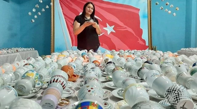 Osmaniye'nin Kadirli ilçesinde görsel sanatlar öğretmeni Mesude Işıklı, 12 yılda biriktirdiği 3 bin kahve fincanıyla Guinnes rekorlar kitabına girmek istiyor.