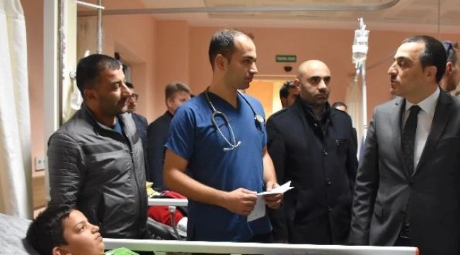 Hastane ziyaretinde yaralılara 'geçmiş olsun' dileklerini iletenVali Öksüz, İl Sağlık Müdürü Zakir Lazoğlu ve hastane personelinden yaralıların sağlık durumuyla ilgili son bilgileri de aldı.